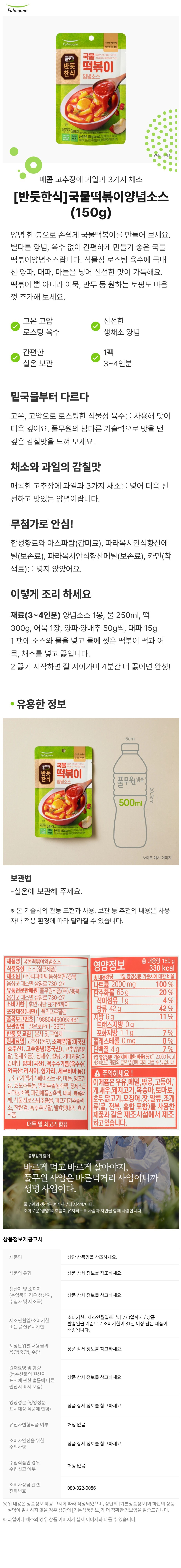 [풀무원] 반듯한식 실온 양념소스 8개 (국물떡볶이4개+직화오징어4개)