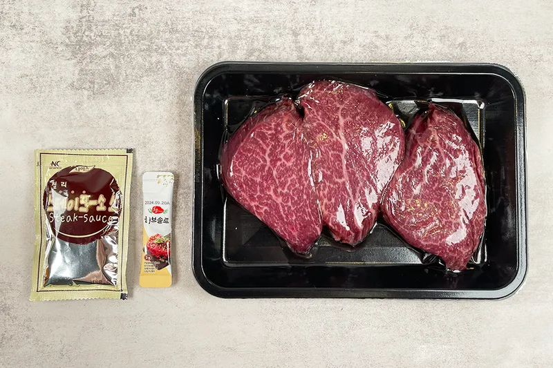고기를 찍어 먹을 수 있는 소스를 함께 드려 따로 준비할 필요 없어요.