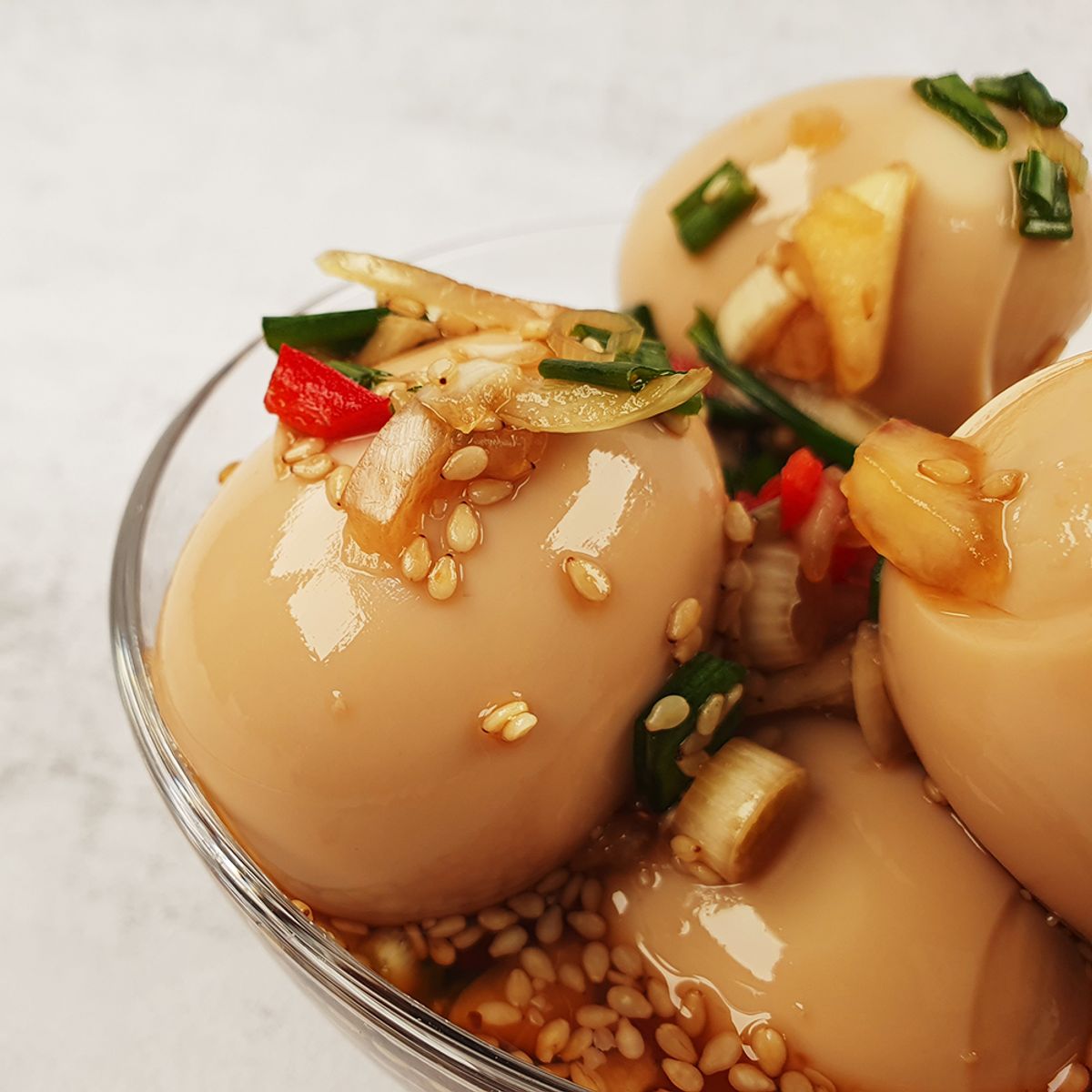 신선한 계란을 수제 간장 양념에 숙성시킨 계란장입니다. 다른 반찬 필요 없이 뜨끈한 밥 위에 올려 먹기만 하면 환상! 거기다 고소한 참기름까지 두르면 절대 잊지 못하는 조합이 될 거예요.