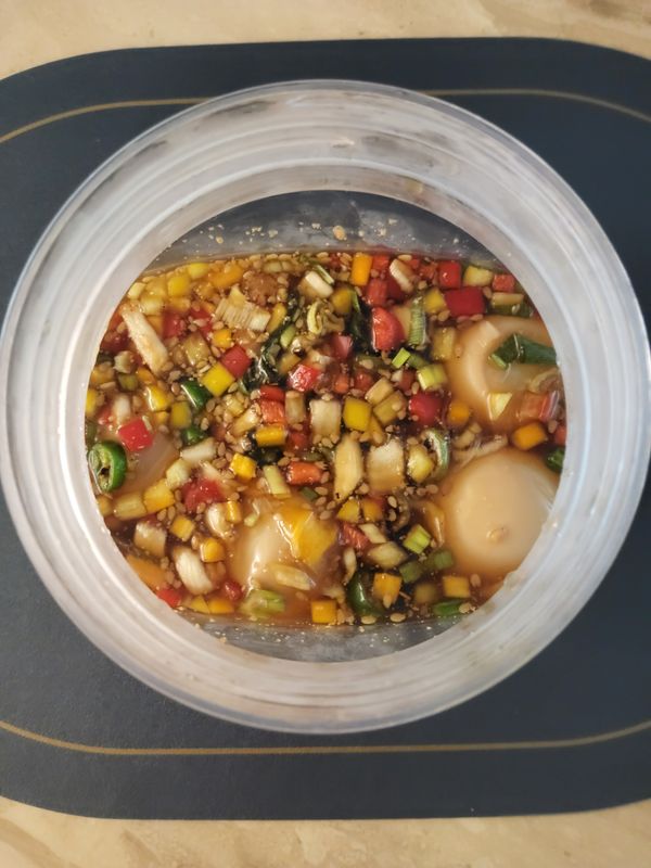 통에 들어있어서 더 안심이 되요 간장맛이 슴슴해요 짜고 단것보단 나은데 좀 간장맛이 약해서 집에서 간장 조금 더 섞어 먹었음 원하던 한국식 계란장은 아니고 일본식 쯔유에 계란맛.. 계란은 반숙이에요