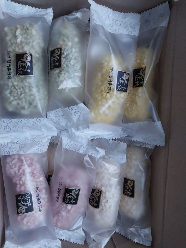 개별포장이라 좋아요. 색깔별로 갯수가 나눠 있는게 아니라 윗줄만 그렇고 그 아래는 그냥 다 하얀색 유과네요.