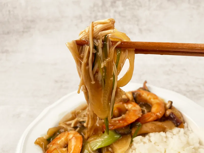 해삼, 새우, 오징어 등 청정한 통영에서 온 해산물이 가득 들어갑니다. 특히 해삼은 건해삼이 아닌 생물을 사용하니 꼬들꼬들 쫄깃함이 살아있어요. 맛도 좋고 식감도 좋고, 영양까지 챙긴 유산슬 덮밥입니다🙌