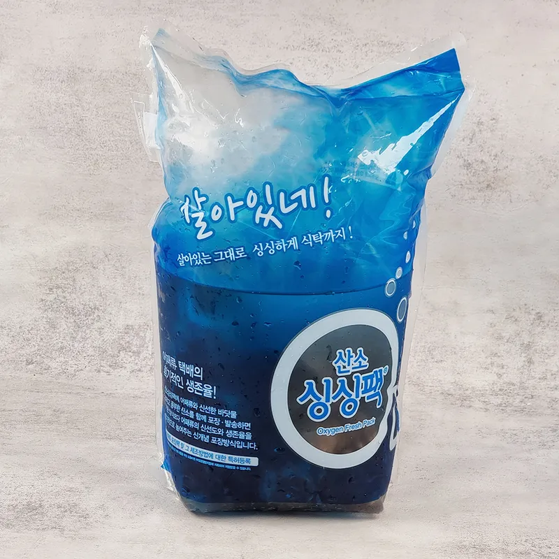 산소팩에 해수와 함께 산소 포장하여 싱싱함을 유지합니다. 아이스박스에 아이스팩을 동봉하여 배송해 드립니다.