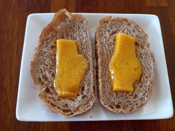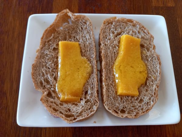 아직 빵과 같이 구워먹진 않았지만 오자마자 강아지랑 한입씩 나눠 먹었어요 쫌 딱딱하긴 한데 둘이 맛있게 먹었어요 곧 빵과 같이 구워먹음 더맛있을듯