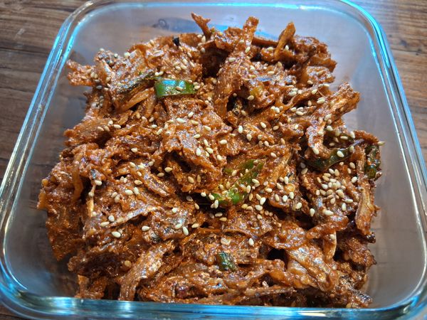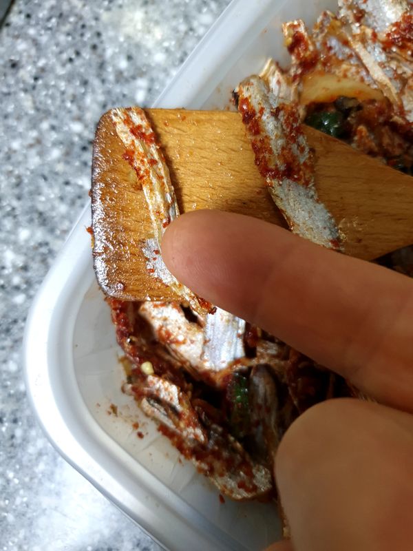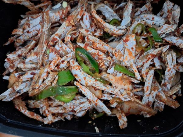 바삭하거나 쫄깃한 마른갈치를 기대했는데 아쉬운맛을 보충하려고 양념을 더해 볶아도봤지만 영 식감이 아쉽네요