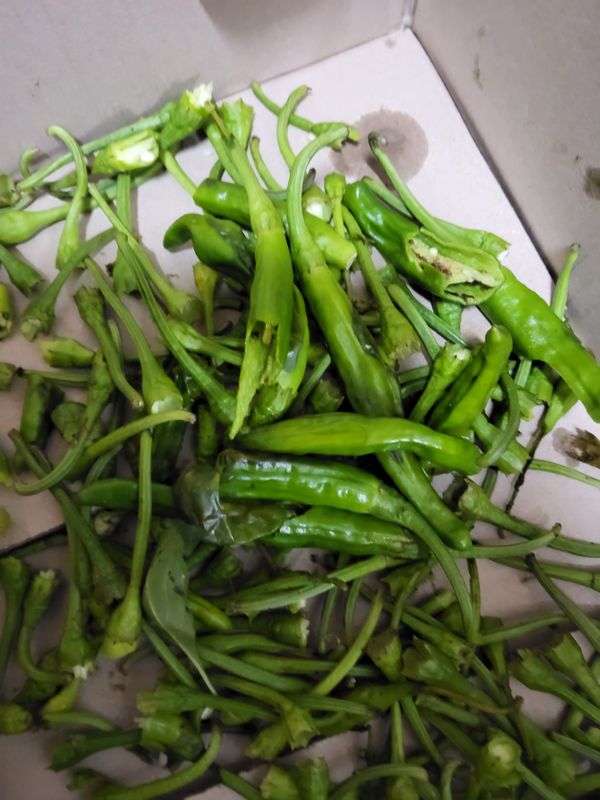 상태는 비교적 좋아요 근데 꽈리고추가 좀 매울듯 붉게 물든것도 있고해서 매울까 조금 무섭긴해도 싱싱해서 좋아요 조금 무른것과 벌레 구멍 있는게 있으니 꼼꼼하게 잘 보셔요