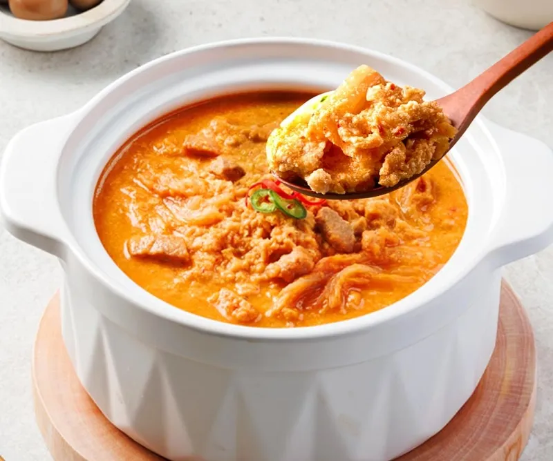 전통 방식으로 발효된 고추장을 사용해 더욱 깊은 맛을 느낄 수 있어요. 발효 과정에서 생성되는 영양성분이 풍부하답니다. 장시간 숙성으로 완성된 발효 고추장의 풍미가 찌개의 깊이를 더해줘요.