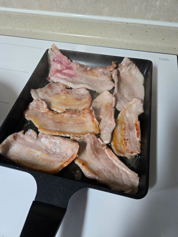 서비스로 팽이버섯과 소스도 같이 보내주셨어요. 신선하고 비계가 좀 많은 듯 했는데 구워서 먹으니 고소하고 맛있었어요.