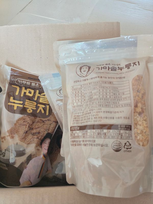 둥굴레누룽지만 먹었는데 카무트도 고소한게 넘 맛있네요. 옥수수전분가루가 들어간것처럼 퍼지지도 않고 영원히 꼬득꼬득~꼭꼭 씹어먹으니 뇌건강에도 좋고 카무트라 건강에도 좋고.맛있네요. 다만~너무 알알이 너무너무 부서진게 아쉽네요.큰 덩어리가 왔음 좋겠네요.