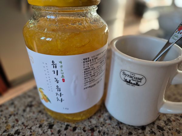 신선하고 달달한 유자차 맛있게 먹고 있어요~