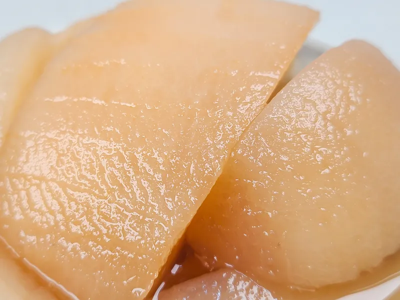 뽀얀 색감을 지닌 국내산 백도복숭아로 만든 병조림입니다.