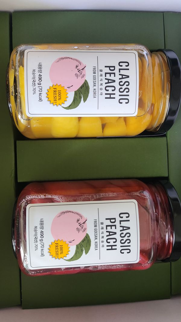 달콤함이 보장된 복숭아를 병조림 선물세트를 준비했어요. 황도와 백도, 핑크 복숭아까지 다채로운 색감의 복숭아를 모두 만나볼 수 있습니다. 취향에 맞게 복숭아를 골라 주문해 보세요. 이왕이면 함께 주문해서 다양하게 맛보아도 좋겠죠?