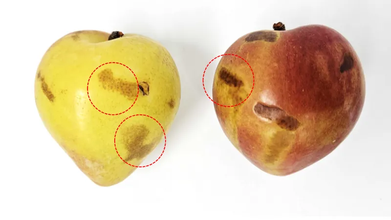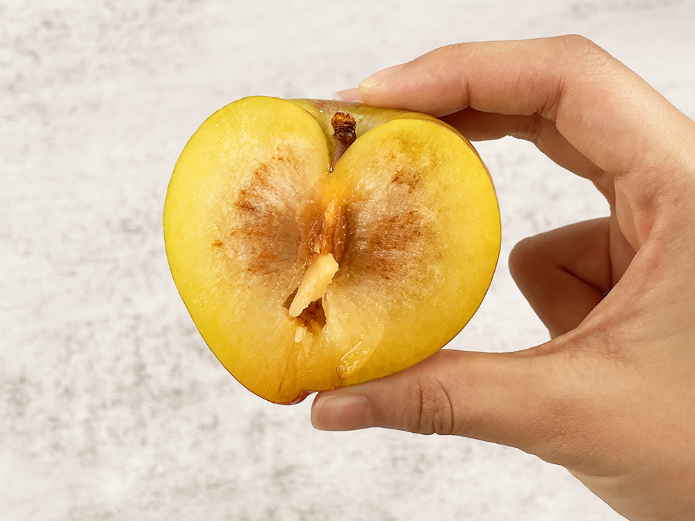 추희 자두는 품종 특성상 9월 중순 이후 저장된 자두에서 사진에 보이는 것과 같은 갈변 현상이 많이 나타납니다. 다만 금년에는 바로 수확한 추희 자두에서도 이런 갈변 현상이 나타나고 있습니다.