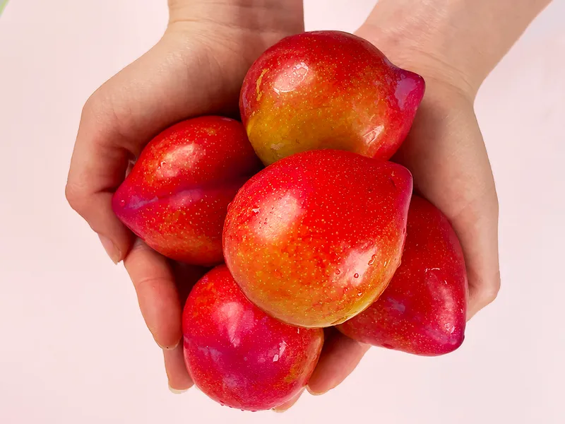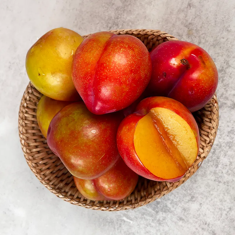 대석자두는 자두 중에서도 가장 빨리 나오는 품종으로서 다른 품종에 비해 사이즈는 조금 작은 편이지만, 새콤달콤한 맛이 일품이죠! 살짝 말랑할 때 드시면 풍부한 과즙과 싱그러운 단맛을 느끼실 수 있어요!