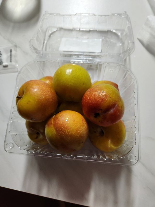 추희자두는 원래 초록빛이 강한 자두이며, 후숙을 하여도 위 사진과 같이 초록빛이 많이 남아있습니다. 최근 높인 기온과 습도 때문에 배송 과정 중에 과육이 과숙되는 것을 예방하기 위해 최대한 단단한 자두로 보내드리고 있습니다.