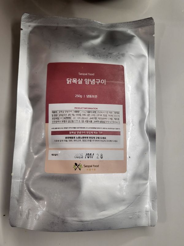 닭 목살 고기가 쫄깃하고 양념이 맛있어요. 포장도 깔끔하게 되어 있어 냉동 보관하기도 편해요.