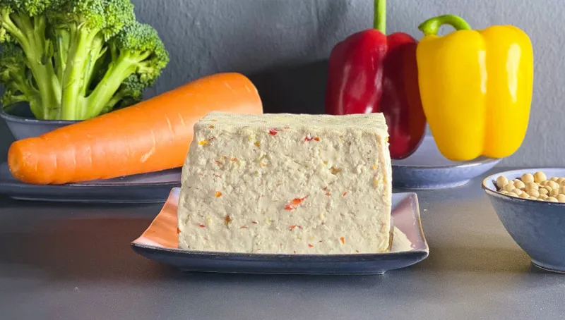 일반 두부에 당근, 파프리카, 브로콜리를 갈아 넣었습니다. 보기에도 예쁘고 맛도 좋답니다.