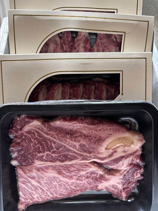 A 소고기는 산소를 차단시키면 갈색 또는 검붉은색으로 변합니다. 진공 포장지를 뜯어 고기와 산소가 접촉하면 15~20분 내외로 다시 붉은빛으로 돌아오니 안심하고 드셔도 됩니다.