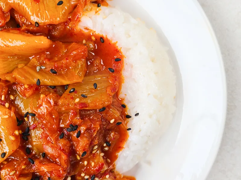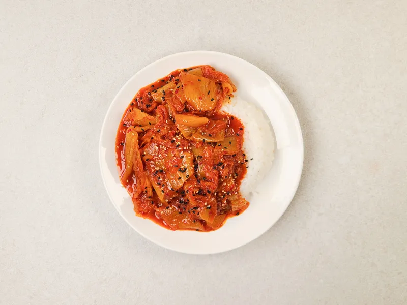 멸치육수에 묵은지를 지져서 만듬 김치 지짐이입니다. 멸치육수를 사용해 더욱 깊은 풍미와 감칠맛을 느껴볼 수 있죠. 덮밥용으로 준비한 만큼 밥과 함께 먹으면 별다른 반찬 없이도 든든한 한 끼를 즐길 수 있습니다.