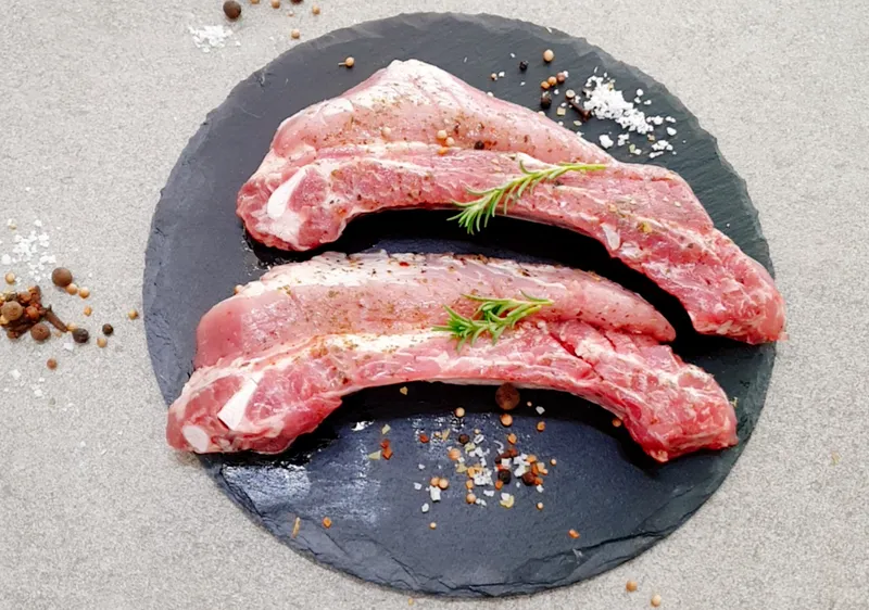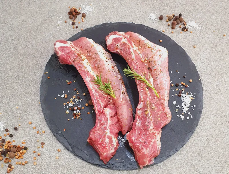 무항생제 돼지갈비 대를 잘라내 양념한 제품입니다. 올리브오일, 허브소금, 후추로 맛을 내 적당한 감칠맛을 자아낼 거예요.