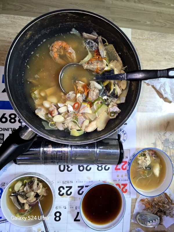 6. 맛있게 드시고 후식으로 200ml의 물과 지리 육수를 하나 추가한 후 누룽지를 넣어서 끓여드시면 훌륭한 마무리로 좋습니다.