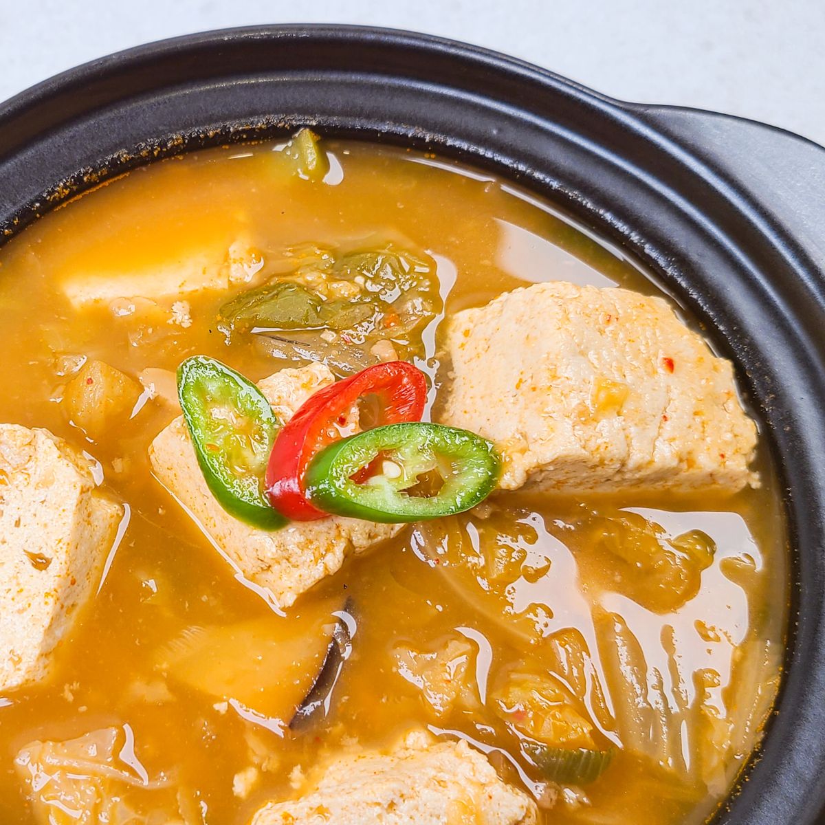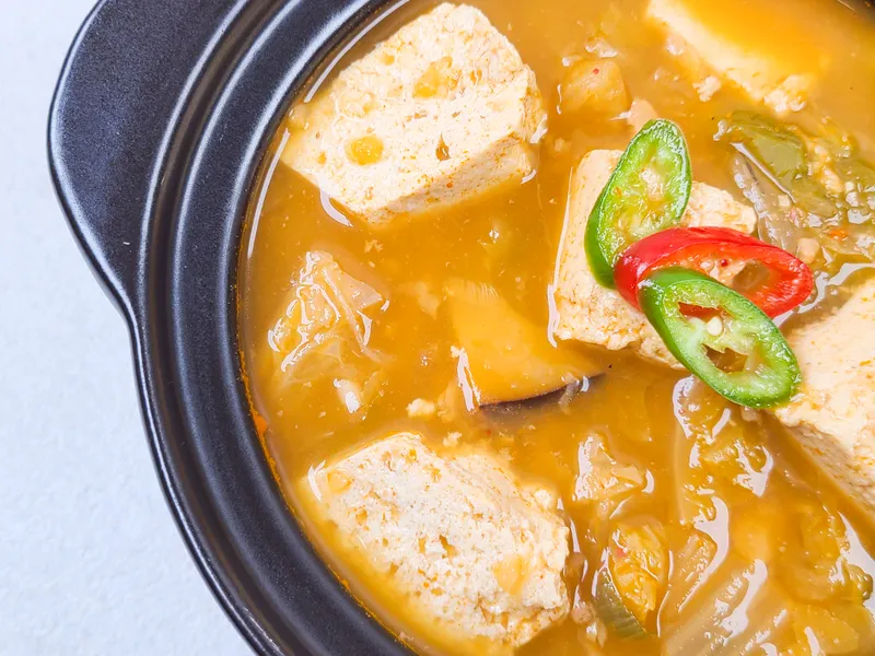 진하고 구수한 청국장! 청국장에 두부, 무, 표고버섯, 애호박 등 각종 야채들도 듬뿍 넣어 끓여 깊은 맛이 한층 깊어졌어요.