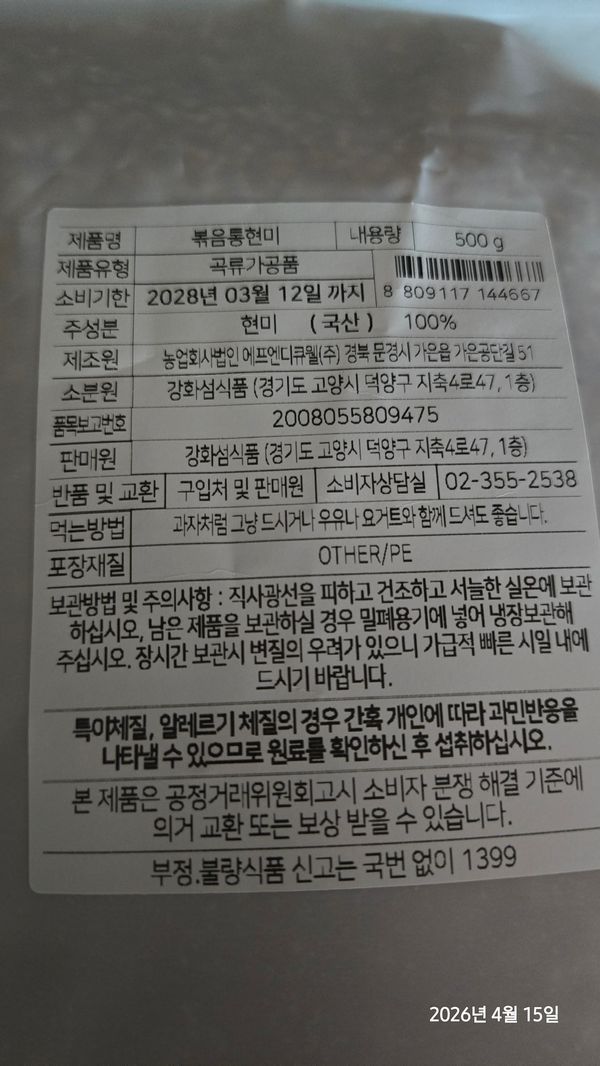 원재료 가공없이 그대로 볶아서 영양도 많고 다이어트용으로 애용합니다.
