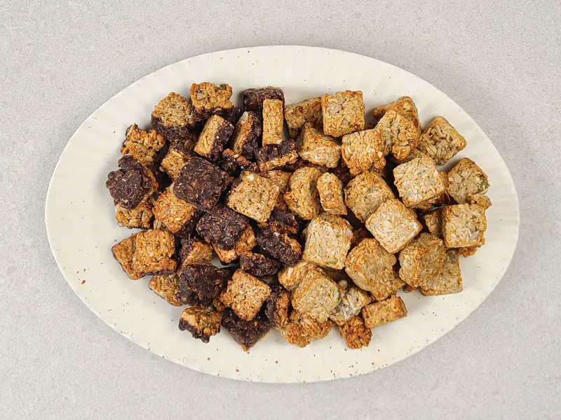 고온 로스팅으로 오븐에 구워 더 바삭한 단백질 구움견과 2종입니다. 인공 감미료를 사용하지 않고 유기농 사탕수수, 달콤한 국산 조청과 캐나다 산 메이플 시럽을 활용하여 건강한 달콤함을 살렸어요.