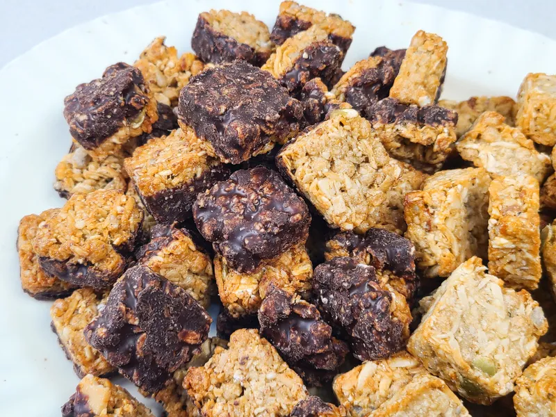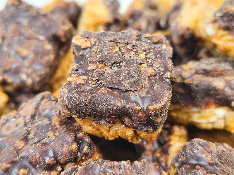 초코 코팅을 입힌 달콤 고소한 초코 단백질 구움견과입니다.