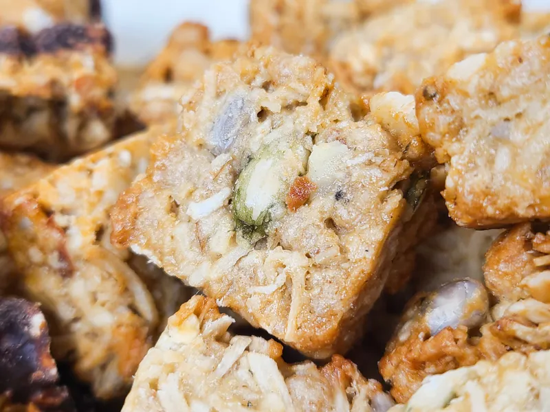 코코넛칩, 아몬드, 캐슈넛, 귀리, 해바라기씨까지! 영양만점 다섯 가지 견과류로 영양도 맛도 더했어요.