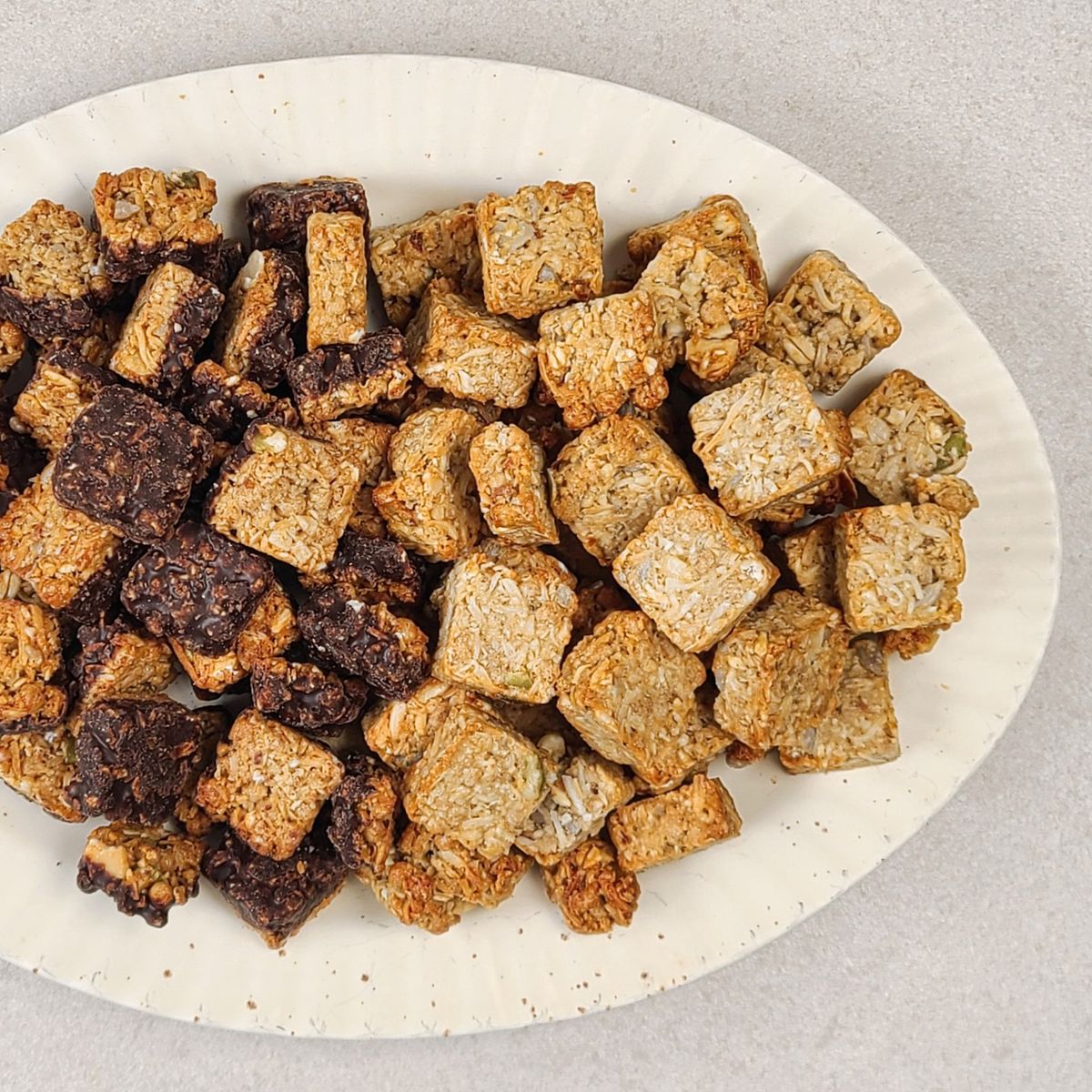 단백질구움견과 기본은 고소하고 초코는 달달해요. 입이 심심할 때 출출할 때 두유랑 같이 간식으로 먹으니 딱 좋으네요.