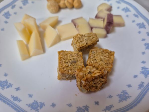 한입에 쏙 넣기 좋은 크기로 되어 있어서 먹기 편하고 맛있어요. 각종 견과류가 뭉쳐져 있어서 고소하고 메이플향이 달콤하게 올라옵니다. 간식으로도 좋고 우유나 그릭요거트랑 같이 먹으면 맛도 있고 배고 든든합니다. 와인 안주로도 아주 좋고요. 고급스러운 맛이에요^^
