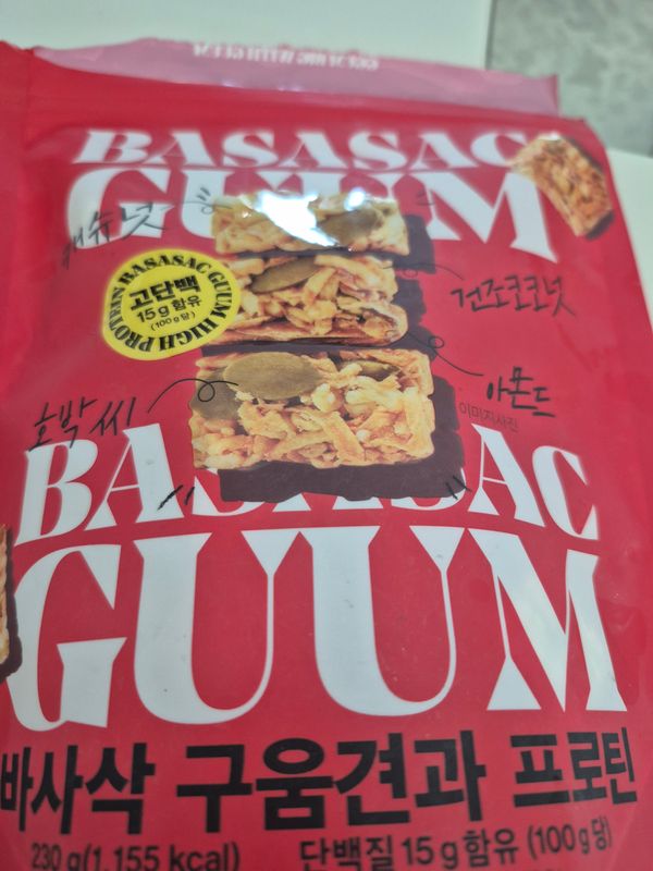 바삭해요. 마트에서 파는 단백질바는 넘 질퍽하고 느낀한데 이건 한입에 먹기 좋아요.