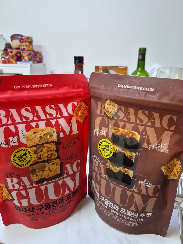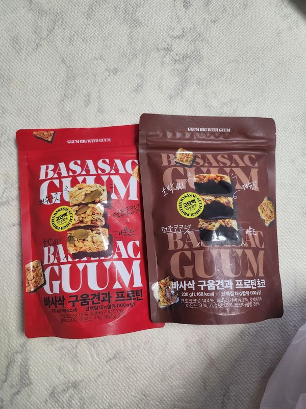 바삭. 쫀득.견과류까지 들어있어서 너무 고소하고 맛있어요 초코맛도 달달하면서 너무 맛있게 잘 먹었어요