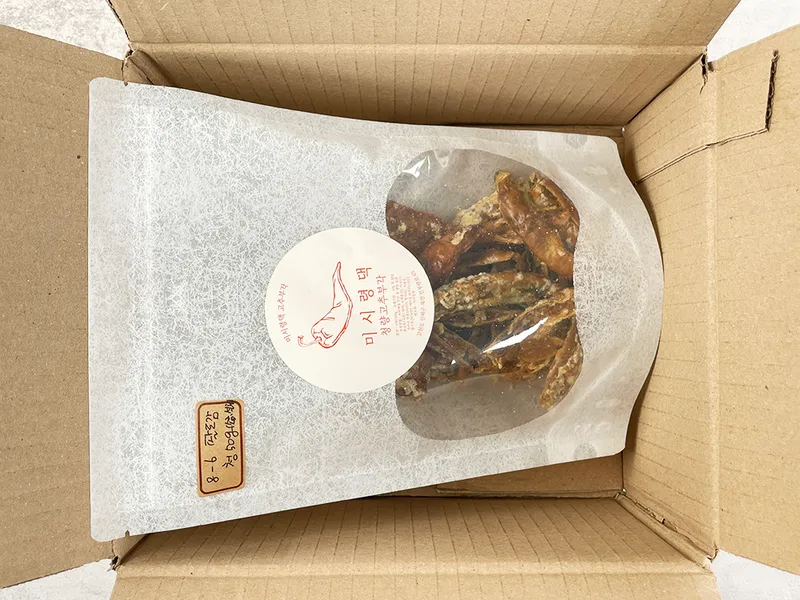 언제 만들었는지 모르는 고추부각이 아닙니다. 당일 튀긴 고추부각을 바로 보내드리기 때문에 바삭바삭한 식감이 아주 좋습니다.