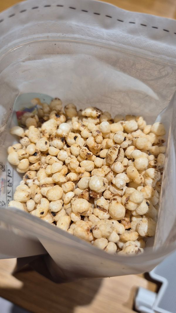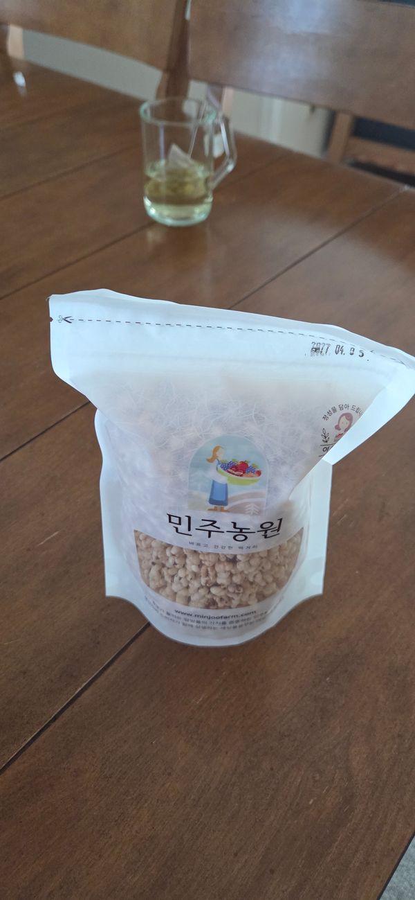 율무만 볶은거라 단맛은 없고 고소한 맛이 씹을 수록 느껴지며 식감도 많이 딱딱하지 않아 부담없어요. 차로 마시거나 쪄서 먹는거보다 볶은거는 영양이 많이 있지는 않다길래 좀 아쉽긴하지만 입심심할때 나쁜거 먹는거보다 나아서 간식으로 좋네요.
