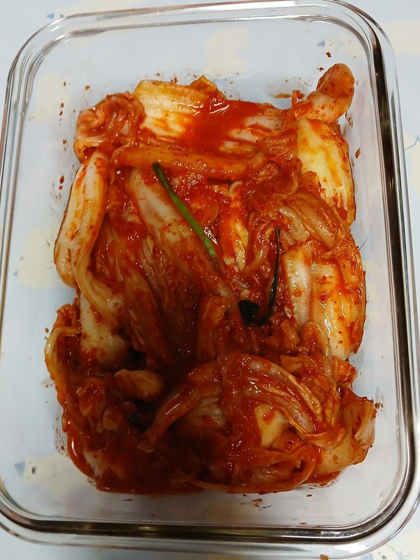 씽씽한겉절이가 왔어요 싱겁게먹긴하지만 마니싱겁긴해요소금살짝 추가했어요 젖갈마니 안들어간 깔끔한서울식 김치예요. 맛은있어요~