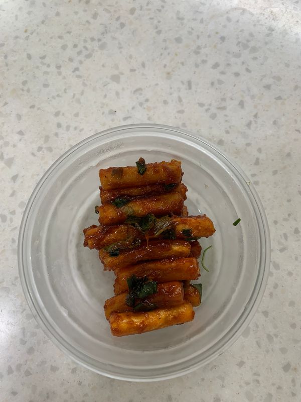 밀떡이네요 기름넣고. 볶다가 소스부어주면 끝이에요 가격대비 비쌉니다 소스는 달큰합니다