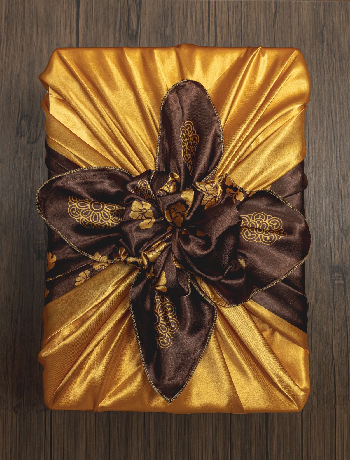 고급스러운 금색 보자기 포장