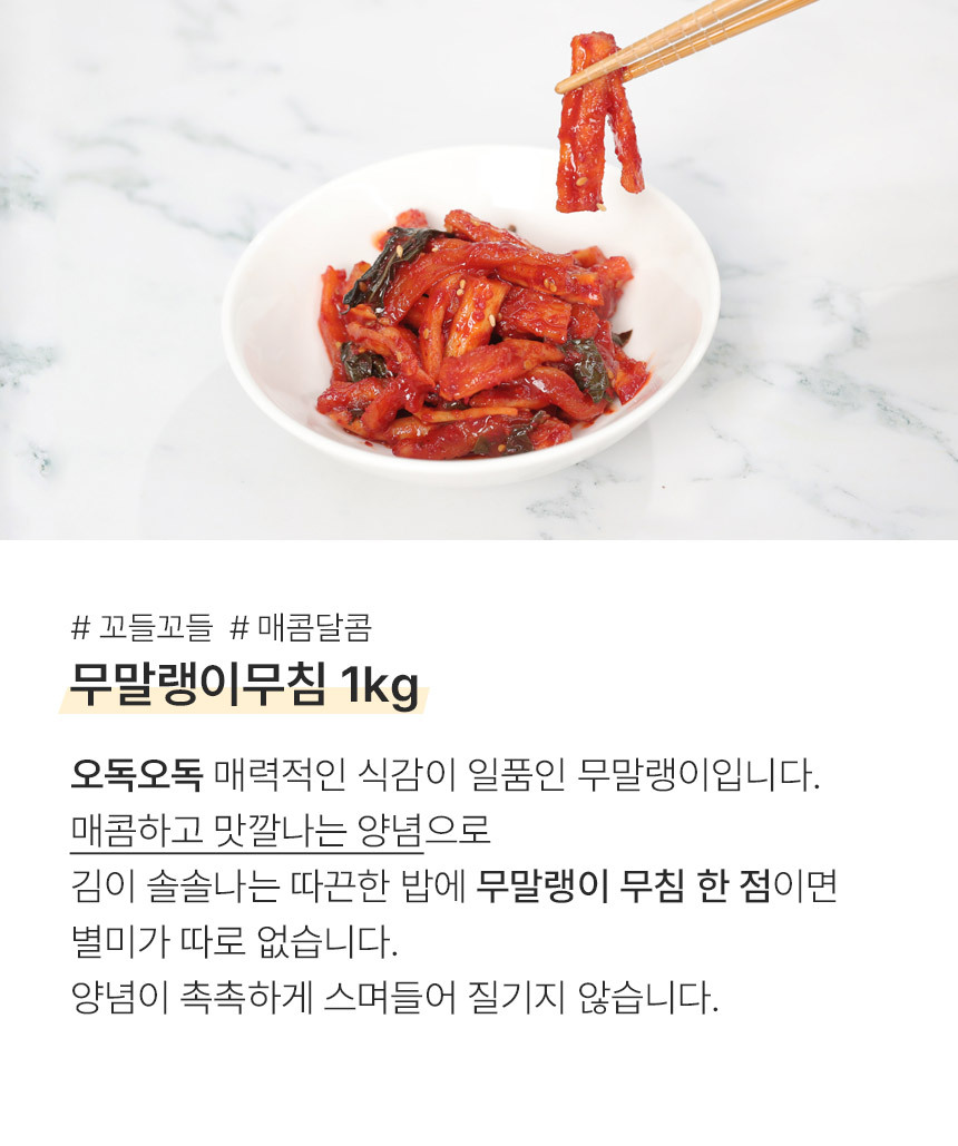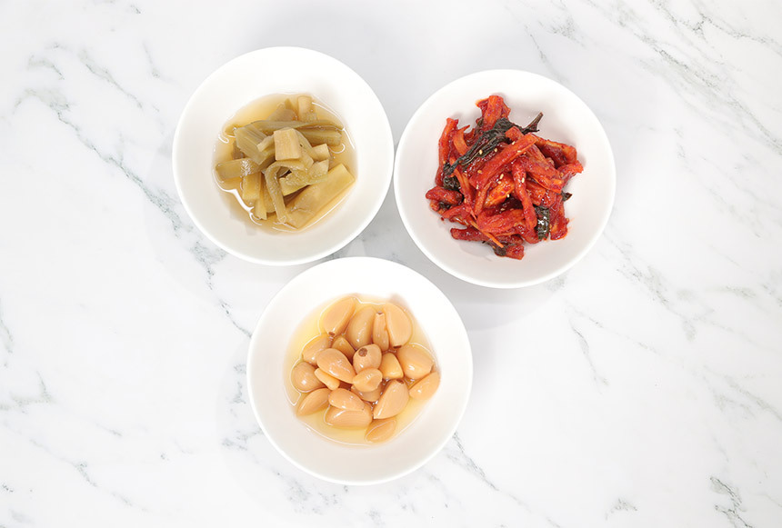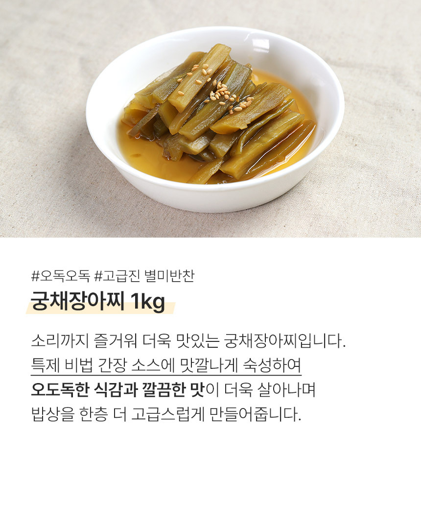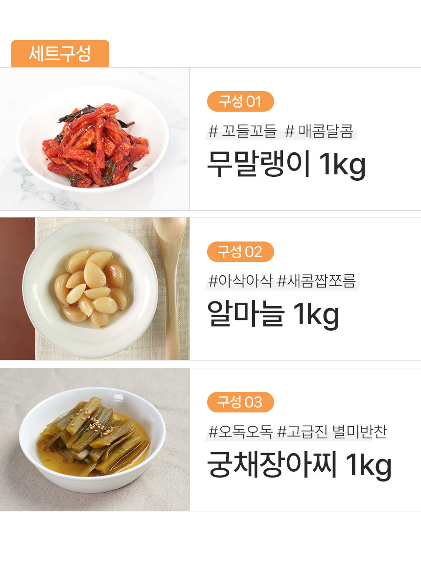 [G] 반찬단지 식감도둑 무말랭이1kg + 궁채장아찌1kg + 알마늘장아찌1kg