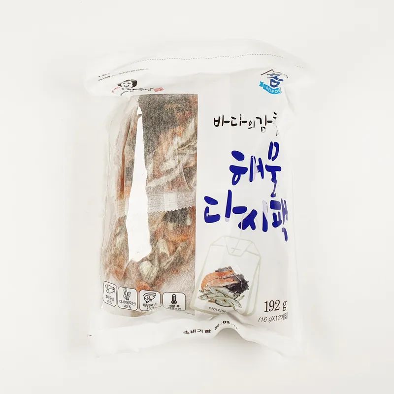 다시마, 멸치, 새우가 함께 들어가 바다의 감칠맛을 내주는 다시마 육수팩입니다.