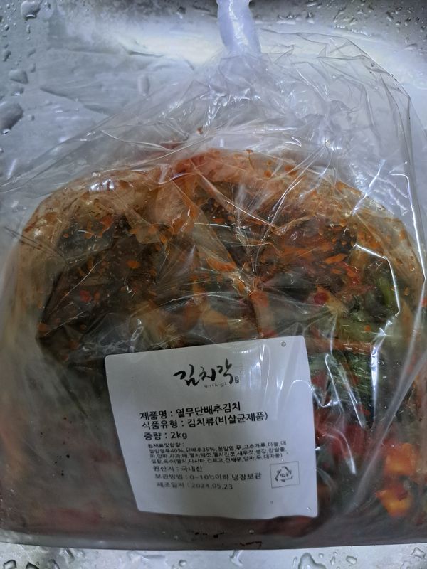 바로 담그서 보내주셨네요. 조금 익혀서 먹으면맛있을 듯 합니다. 다른 김치들도 입맛에 맛아 단골이 되었네요. 맛난김치 계속 부탁드립니다. 잘먹겠습니다. 사은품 깍두기도 감사합니다.