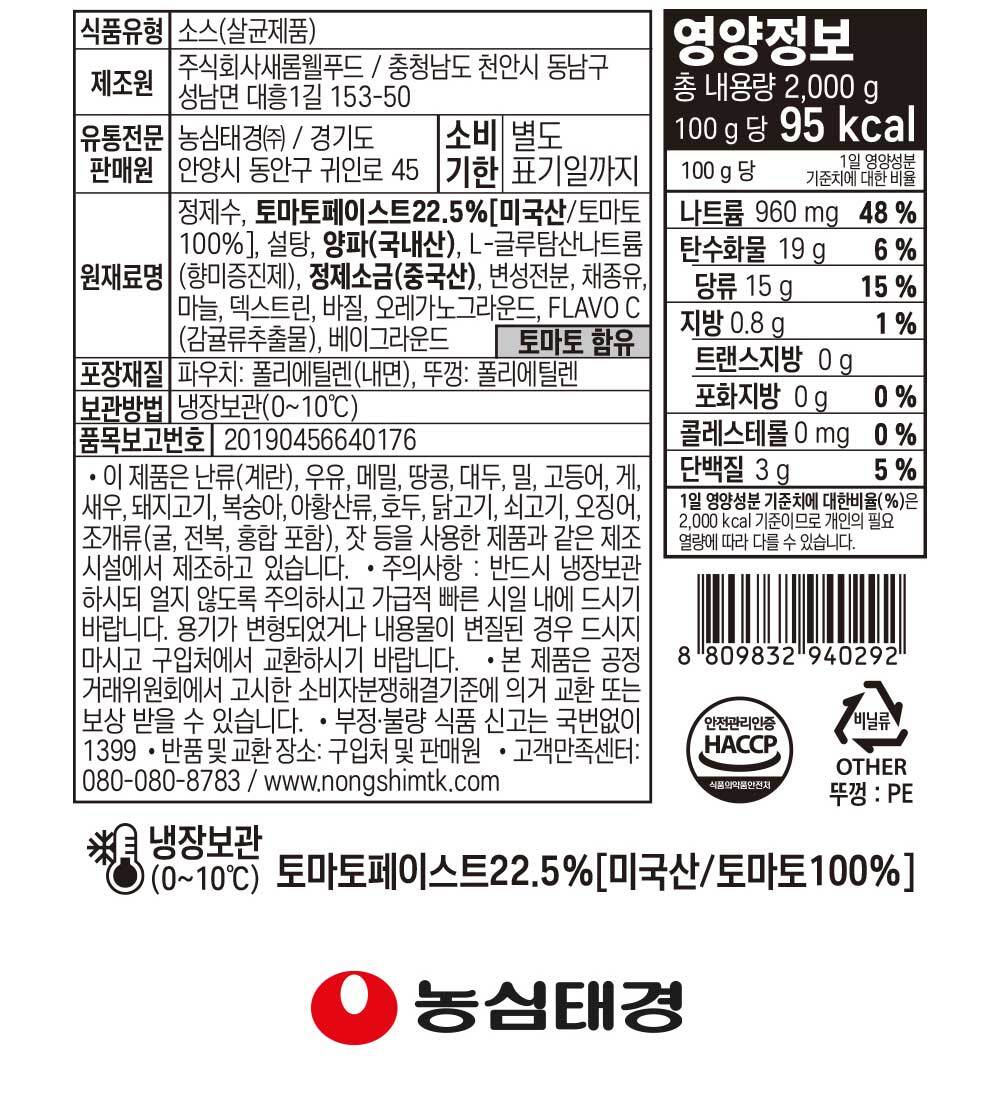 [G] 베지가든 토마토 파스타 소스 2kg (식물성) 1개