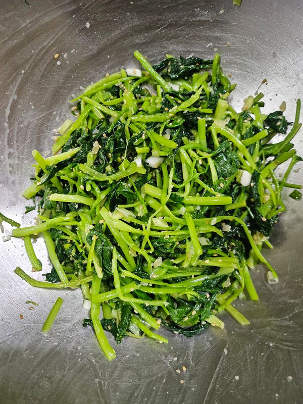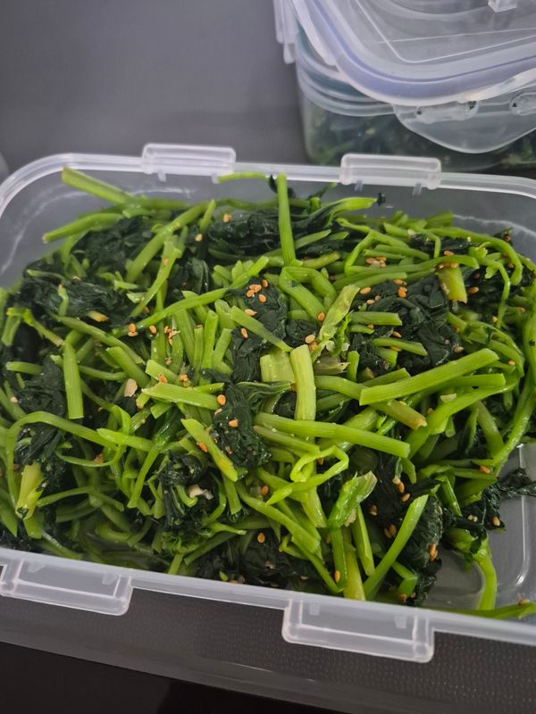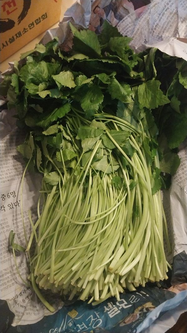 싱싱하네요.질긴 끝부분 잘라내고 데쳐서 나물로 무쳤더니 상큼하네요.양이 생각보다 많아서 반은 겉절이 하려고 남겼놨어요.