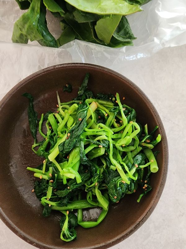 싱싱하네요.질긴 끝부분 잘라내고 데쳐서 나물로 무쳤더니 상큼하네요.양이 생각보다 많아서 반은 겉절이 하려고 남겼놨어요.