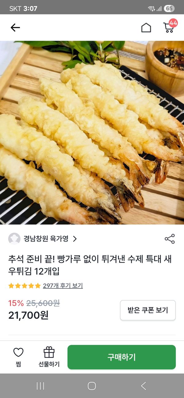 새우자체가 크고 튀김옷이 두껍지 않아요. 깨끗한 기름에서 튀긴것 같아 건강하게 먹게 됬어요. 맛있어요~ 또 주문하고 싶네요~