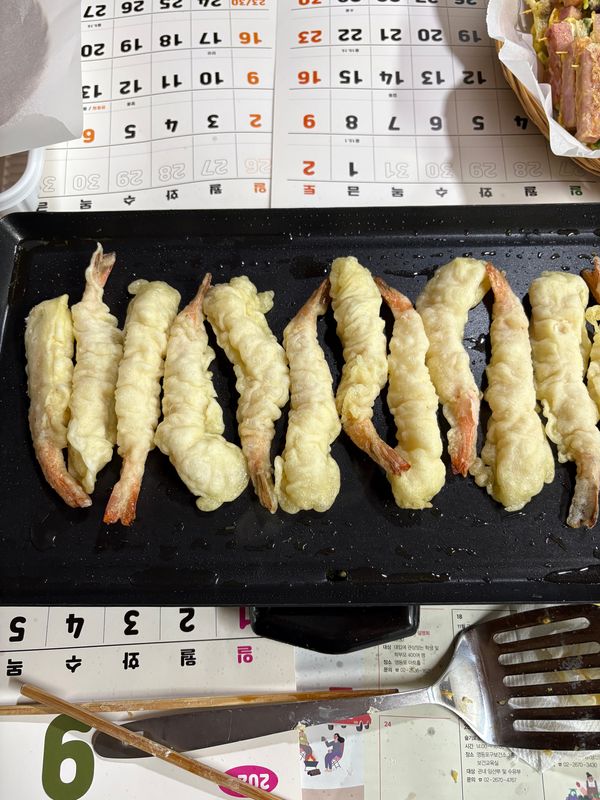 딸이 좋아하는 새우튀김 입니다. 3년째 명절때마다 여기서 구입하네요. 튀김옷이 점점 두꺼워지는 듯한 느낌이 들어 아쉽지만 반죽에 간편히 해 먹을 수 있어 좋습니다.