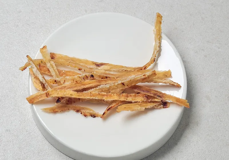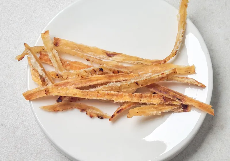 적당한 크기로 잘라 구운 아귀 스틱은 한 입에 쏙 들어가는 크기로 만들어진 가벼운 간식이에요. 담백하고 고소한 맛이 입안 가득 퍼지는 것이 특징이랍니다.