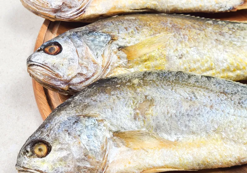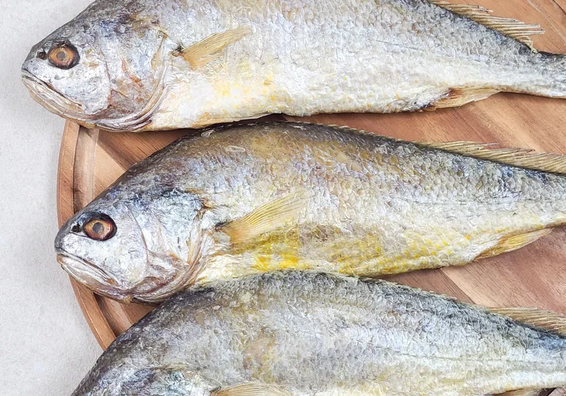 건조와 가공 단계부터 법성포에서 직접 생산하고 있어서 믿고 안심하고 드실 수 있어요. 한 마리씩 개별 진공포장하여 냉동실 냄새가 밸 걱정이 없고, 필요할 때마다 한 마리씩 꺼내 드실 수 있는 편의성을 제공해요. 중국산 부세나 국산 참조기에 비해 크기가 훨씬 크고(보통 25cm~30cm 이상) 살이 많아 굴비용으로 인기가 높아요.