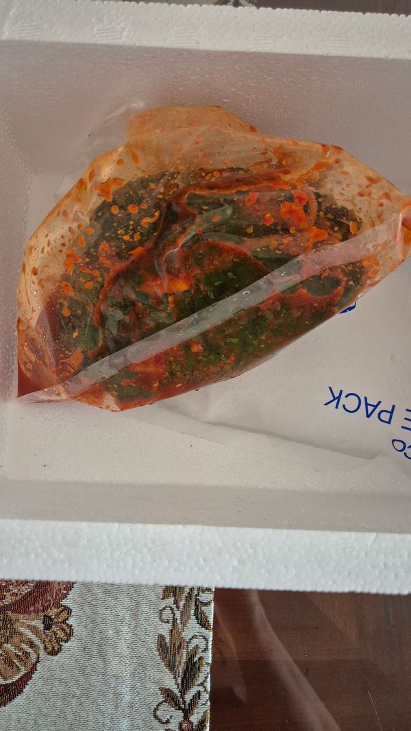 깻잎에 무우채가 있어 국물이 많이 생겨 좀 많이 심심 했어요 매콤 하니 맛은 있지만 조금 보완 하면 좋겄어요
